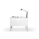 میز شامل کنسول یا شلف برای قرار دادن ابزارها و مواد مورد نیاز، دو کشوی مجزا و یک کشوی زیر دستی با تری پلاستیکی است. این فضاهای ذخیرهسازی کمک میکنند محیط کار منظم باشد و ابزار و مواد در دسترس کاربر قرار داشته باشند.